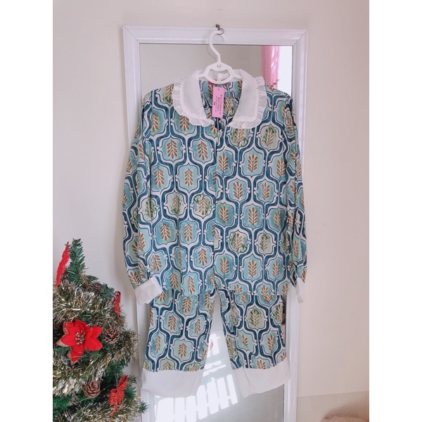Pijama nữ, Bộ đồ ngủ tay dài - quần dài lụa mango cổ nhọn - Pyjamas House
