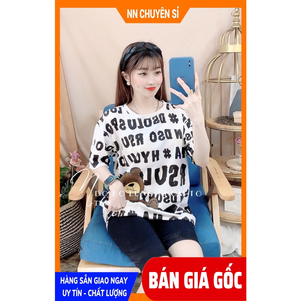Đồ bộ thun lửng phom to cho nữ mặc nhà chất vải mềm mát in chữ in gấu hoạt hình dễ thương TP88