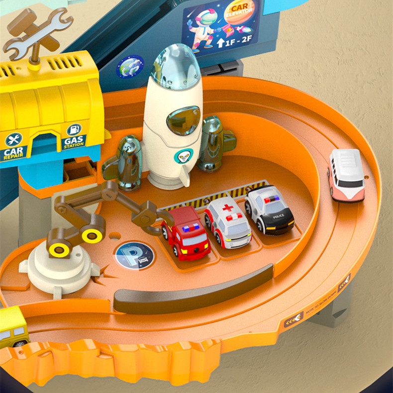 Đồ Chơi Đường Ray Vũ Trụ Garage Đỗ Xe Ô TÔ 3 Tầng Cao Cấp,Đường Đua Không Gian Căn Cứ Sao Hỏa Cho Bé Tặng Pin Sạc