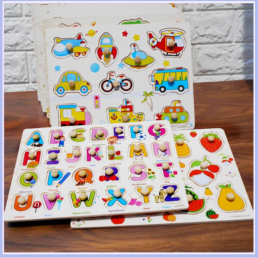 Đồ chơi bảng ghép hình núm gỗ Bảng gỗ có núm cho bé loại to đẹp 22×30cm nhiều chủ đề