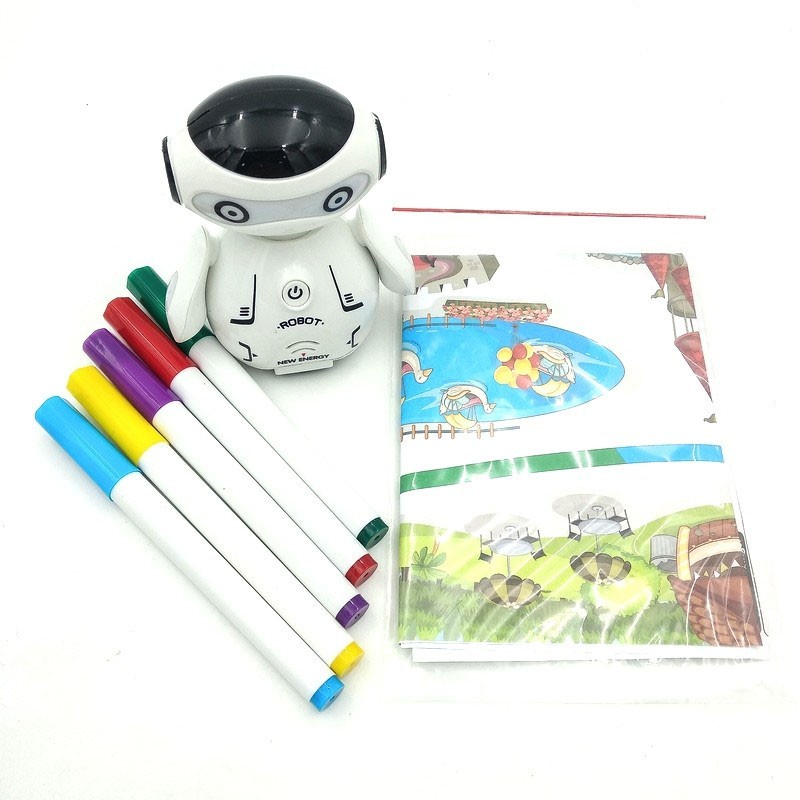 ROBOT THÔNG MINH CẢM ỨNG MÀU SẮC ĐI THEO NÉT VẼ CỦA BÉ Sản phẩm bao gồm: 1 con robot thông minh, 4 bút màu sắc kèm 4 pin cúc. Chú robot sẽ tự di chuyển, men theo đường nét vẽ của chính bé tạo ra. Khám phá những điều thú vị về bộ đồ chơi này nào: 1. Cuộc phiêu lưu kỳ