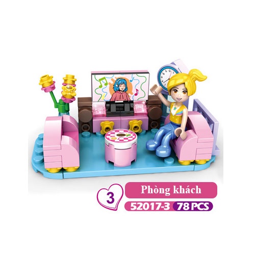 Đồ chơi lắp ráp cho bé gái , bé trai mẫu phòng âm nhạc ,phòng trang điểm, phòng khách, phỏng ngủ chất liệu nhựa ABS Phòng âm nhạc :80 chi tiết Phòng ngủ :77 chi tiết Phòng khách : 78 chi tiết Phòng trang điểm : 80 chi tiết đồ chơi lắp ghép, đồ chơi trẻ em , đồ chơi l