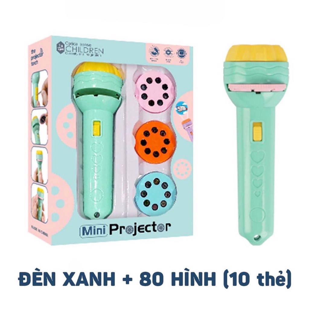 CHI TIẾT SẢN PHẨM: Đèn pin chiếu hình bộ 80 hình cho bé • Học liệu cho bé bộ đèn pin và hình chiếu giúp bé từ 3 tuổi rèn luyện cho bé sự ham học hỏi kết hợp sự tìm tòi, sáng tạo rất tuyệt vời. • Màu sắc sản phẩm tươi sáng, bắt mắt, thiết kế ngộ nghĩnh, dễ thương, bé sẽ thích ngay từ cái nhìn đầu tiên. • Chất liệu sản phẩm an toàn, ba mẹ hoàn toàn yên tâm khi cho con chơi mà học với đồ chơi cho bé. • Cách luyện: Thay đổi hình ảnh liên tục bằng cách xoay tròn tấm phim khi lắp vào rãnh chứa sau đó chiếu lên tường hoặc bảng trắng sẽ hiện lên hình các con vật vô cùng ngộ nghĩnh, đáng yêu. Thông số sản phẩm: - Màu sắc: hồng, xanh, tím - Gồm 10 thẻ 80 hình hoạt hình - Chất liệu: nhựa ABS