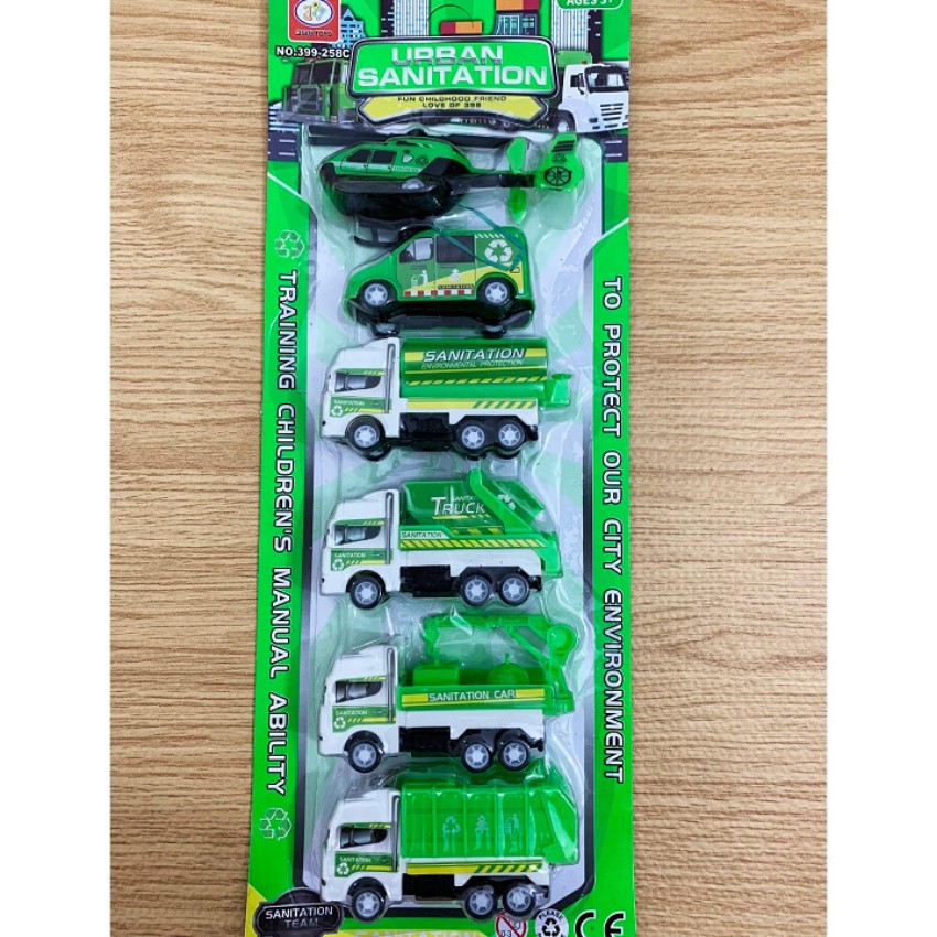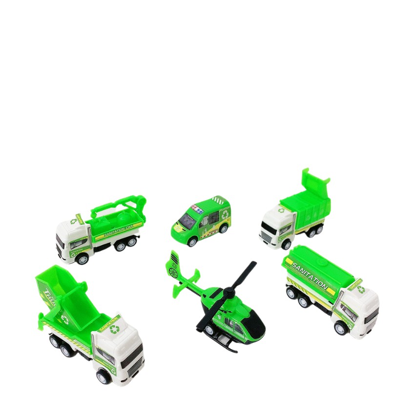 Đồ Chơi Xe Chở Rác Chạy Đà Cót, Gồm 6 Xe Mini Khác Nhau, Màu Xanh Lá Đẹp, Thiết Kế Mô Phỏng Thật