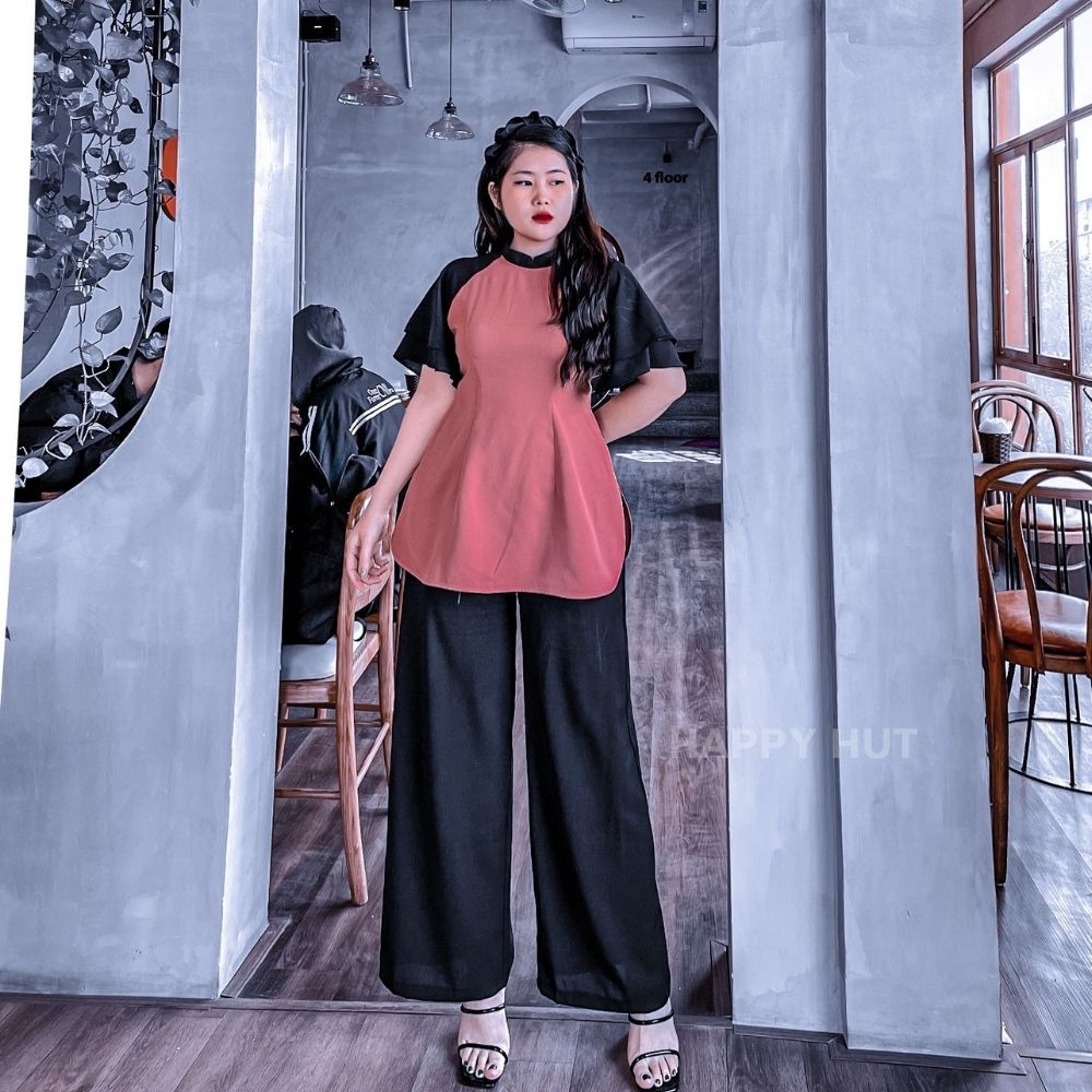 Đồ lam đi chùa bigsize cho nữ bộ quần áo form rộng sang trọng và trang nhã cho nàng từ đi lễ HAPPY HUT B01