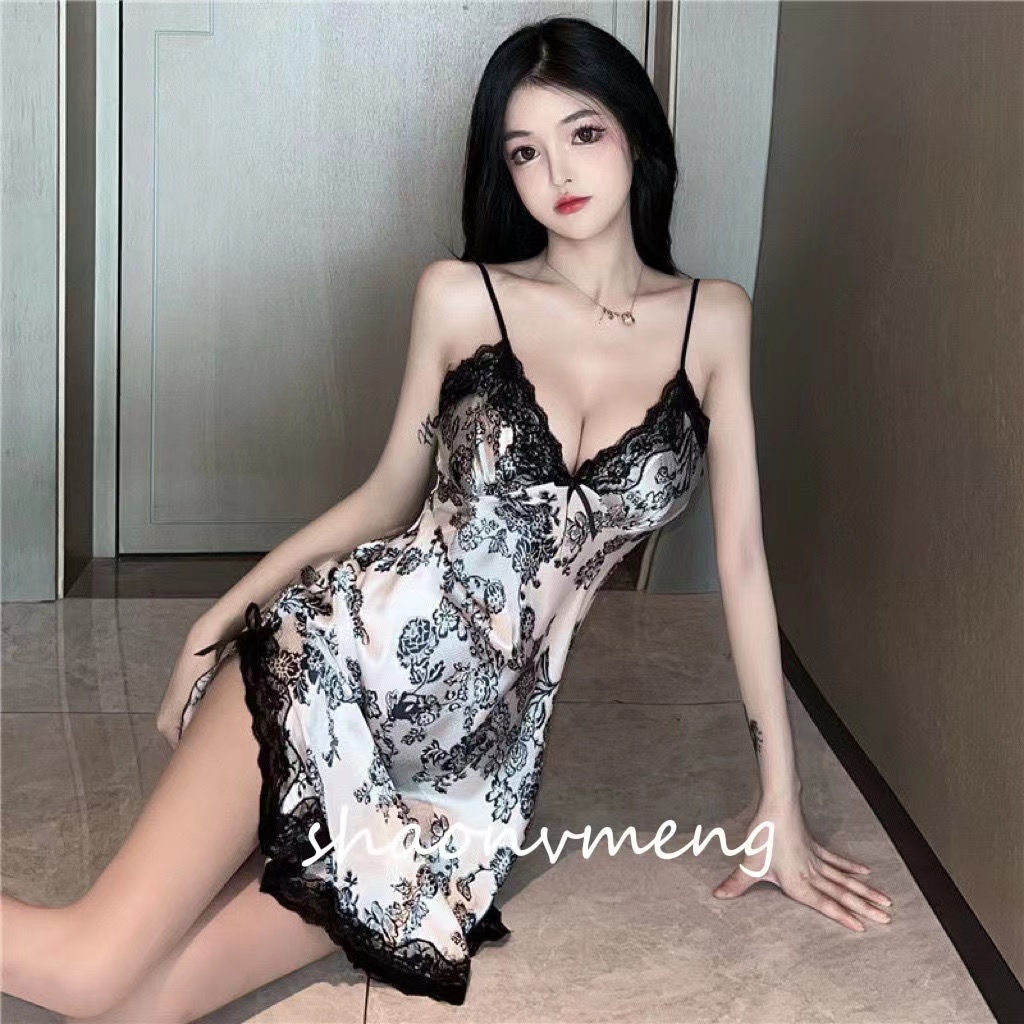 Đồ ngủ sexy đồ ngủ satin váy sexy đồ ngủ Đồ ngủ Vải Lụa Satin Mỏng Phối Ren Thiết Kế Quyến Rũ Cho Nữ