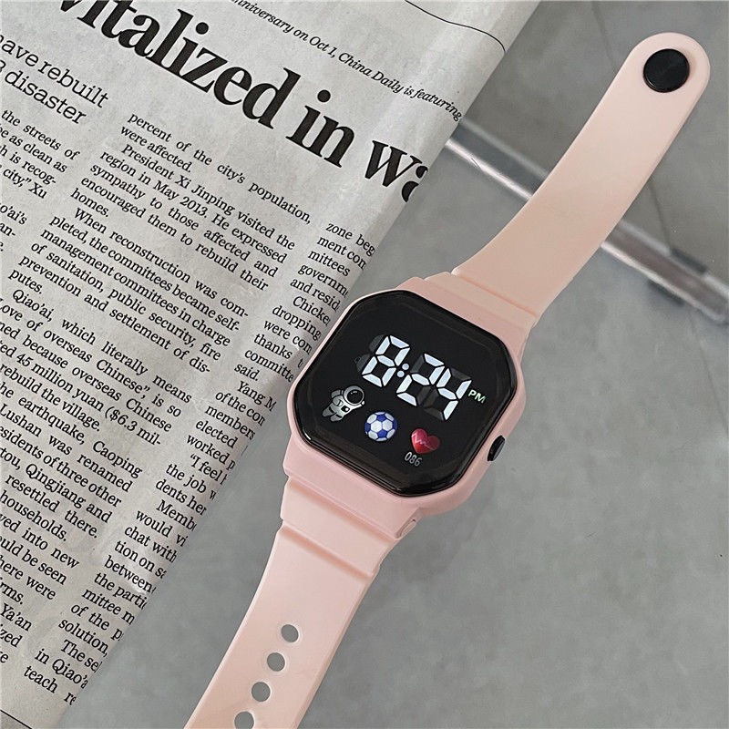 Đồng Hồ Đeo Tay Điện Tử Đèn LED Mặt Vuông Màu Trơn Họa Tiết Phi Hành Gia Trái Tim Phong Cách Hàn Quốc Cho Học Sinh Nam Nữ JP6