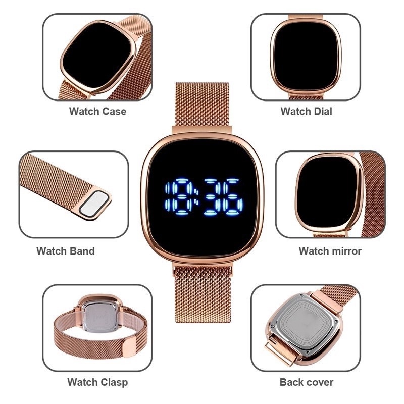 Đồng Hồ Đeo Tay Điện Tử Mặt Vuông Đèn LED Cảm Ứng Chống Nước 30m Sang Trọng Cho Nam Nữ