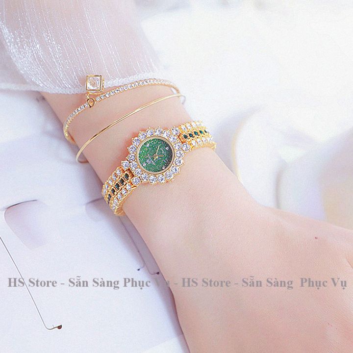 Đồng hồ đeo tay nữ Bs viền đính đá, mặt tròn nhỏ xinh, cao cấp cá tính, thời trang đẹp giá rẻ
