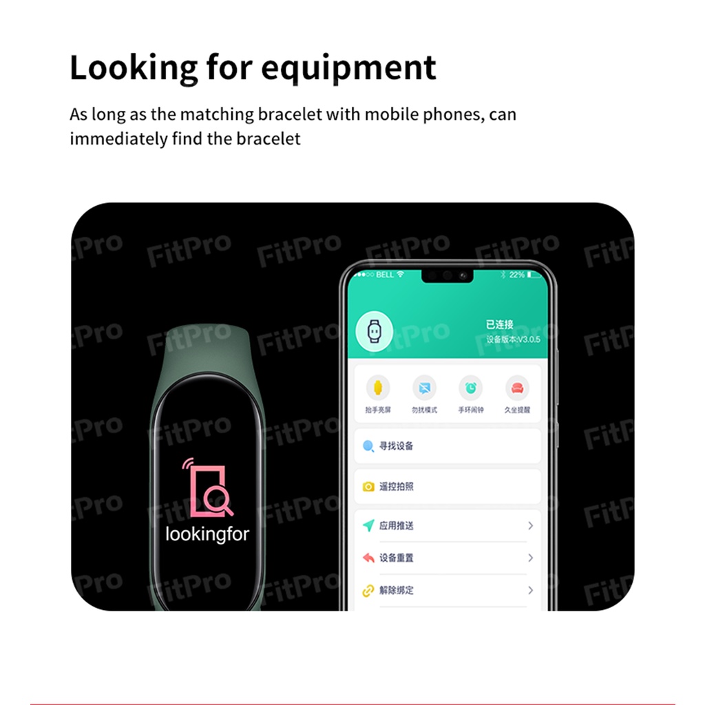 Mô tả: Đặc điểm: * Theo dõi hoạt động cả ngày: số bước, lượng calo đốt cháy, quãng đường đi được. * Nhịp tim, huyết áp * Theo dõi giấc ngủ (thời gian ngủ, chất lượng giấc ngủ) * Chế độ thể thao: Chạy, Ngồi lên, Dây trượt * Nhắc nhở thông minh: Nhắc nhở cuộc gọi,