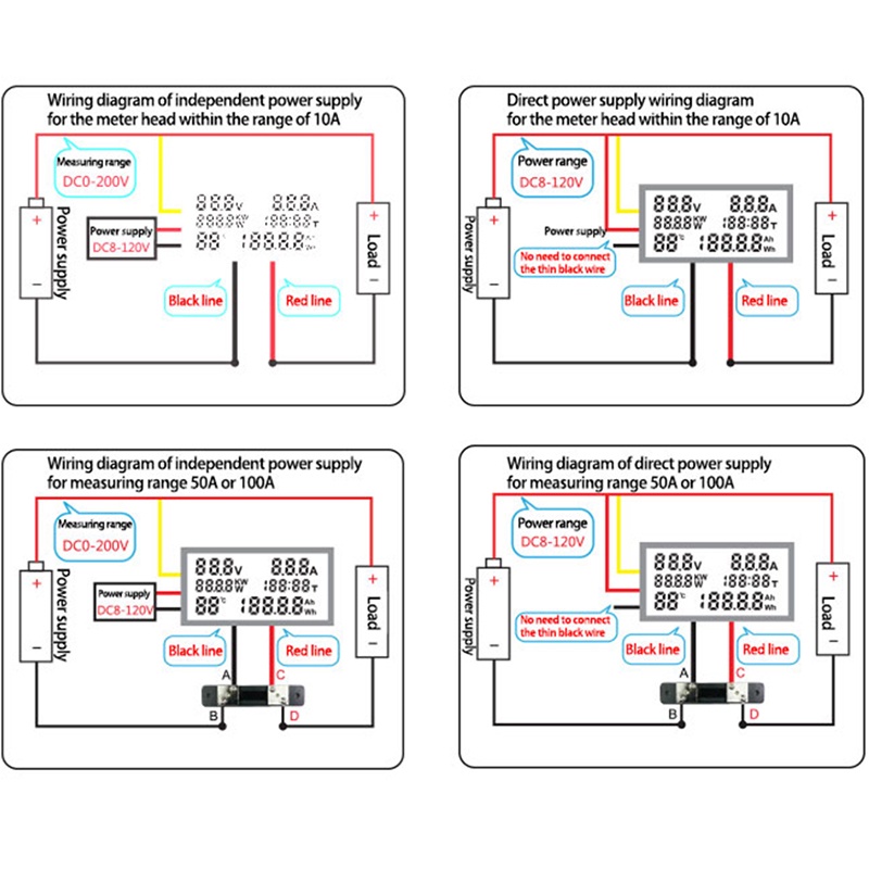 ❤❤❤[Cửa HÀNG LIGHTTIME]❤❤❤ Thời gian tốt đẹp. cuộc sống thoải mái. Kính chào quý khách hàng đến với cửa hàng LIGHTTIME.Lighttime cho phép mọi khách hàng có trải nghiệm mua sắm thú vị, tận hưởng tốc độ giao hàng nhanh hơn và tận hưởng chất lượng cuộc sống cao hơn.Chúng tôi bán các sản phẩm tốt nhất, cung cấp dịch vụ tốt nhất và làm cho khách hàng hài lòng hơn. Sau đây là thông tin chi tiết về sản phẩm của chúng tôi, nếu bạn có bất kỳ câu hỏi nào, xin vui lòng tham khảo. ____________________________________________________________________________________________________________________ Vôn kế DC 0-200V Ampe kế KWS Đồng hồ đo năng lượng điện LED Kỹ thuật số DC Wattmeter Đồng hồ đo điện có chức năng đặt lại 0-100A Tính năng ' 1.Thiết kế công nghiệp mới. 2.Bảy chức năng: nó có thể đo điện áp, dòng điện, công suất, thời gian, nhiệt độ, công suất, điện. 3.Màn hình màu. 4.Chất liệu tinh tế và thoải mái. Chất liệu chống cháy thân thiện với môi trường, thoải mái khi chạm vào. Sự chỉ rõ Mô hình: DC200-10A Điện áp cung cấp: 8-120V Điện áp thử nghiệm: 0-200V Hiện tại 0- 10A Công suất: 0-2000w Giờ lông cừu: 0-199999 Watt giờ: 0-19999Wh Thời gian: 0-200H Nhiệt độ: -9C-99C Trọng lượng '60g Mô hình: DC200-50A Điện áp cung cấp: 8-120V Điện áp thử nghiệm: 0-200V Hiện tại: 0- 50A Công suất.0-10000w Giờ lông cừu: 0-199999 Watt giờ: 0-19999Wh Thời gian: 0-200H Nhiệt độ: -9C-99C Trọng lượng '115g Mô hình: DC200-100A Điện áp cung cấp: 8-120V Điện áp thử nghiệm: 0-200V Hiện tại: 0- 100A Công suất.0-20000w Giờ lông cừu 0-199999 Watt giờ: 0-19999Wh Thời gian: 0-200H Nhiệt độ: -9C-99C Trọng lượng: 185g