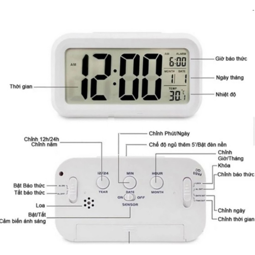 Đồng hồ điện tử để bàn nhiều màu sắc Đa chức năng: hiển thị thời gian; ngày tháng; nhiệt độ...2 chế độ thời gian: 12h/24h Sử dụng 3 pin AAA (không bao gồm) Màn hình đèn LED sáng nền cảm biến tự động: tự động sáng trong ban đêm. Có thể xem giờ vào đêm nhờ chức năng đèn nền dễ chịu và không ảnh hưởng đến giấc ngủ Thiết kế hiện đại và thời trang phù hợp để trang trí cho mọi không gian Chữ số lớn:rất tốt cho người già sử dụng Kích thước:13.8 x 8 x 4.5 (cm) Hiển thị ký tự lớn độ nét cao; Hiển thị ngày / hiển thị báo động / hiển thị nhiệt độ Chức năng đèn ngủ cảm biến thông minh, khi ánh sáng xung quanh không đủ để xem giờ, anh sẽ tự động bật đèn nền; (Chức năng này có thể được chuyển đổi) Thiết kế nhân bản từ một quan điểm Khi chuông kêu, nhấn nút trên cùng một lần, chuông sẽ dừng và tiếp tục đổ chuông sau 5 phút Đồng hồ báo thức gradient. Với màn hình hiển thị nhiệt độ, Fahrenheit và Celsius có thể được chuyển đổi theo ý muốn. Đèn ngủ nền mềm, lịch vạn niên, chuyển đổi 24 giờ / 12 giờ. VIDEO HƯỚNG DẪN SỬ DỤNG: https://youtu.be/s8tl0NBfZeA