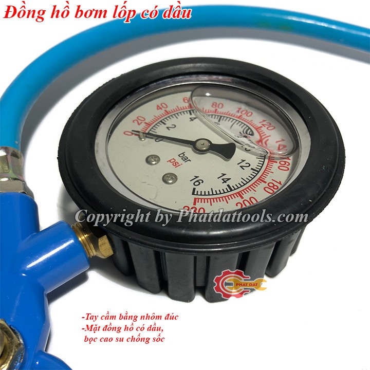 ⏲ Đồng hồ bơm lốp ô tô xe máy có dầu 👍 CÔNG DỤNG: bơm hơi,khí nén vào sắm,lốp ô tô,xe máy... 👍 ĐẶC ĐIỂM CẤU TẠO: - Tay cầm bằng nhôm đúc cao cấp,cầm nắm rất êm tay - Mặt đồng hồ hiển thị chính xác giúp kiểm soát áp suất lốp khi bơm. - Mặt đồng hồ được bọc cao su ch