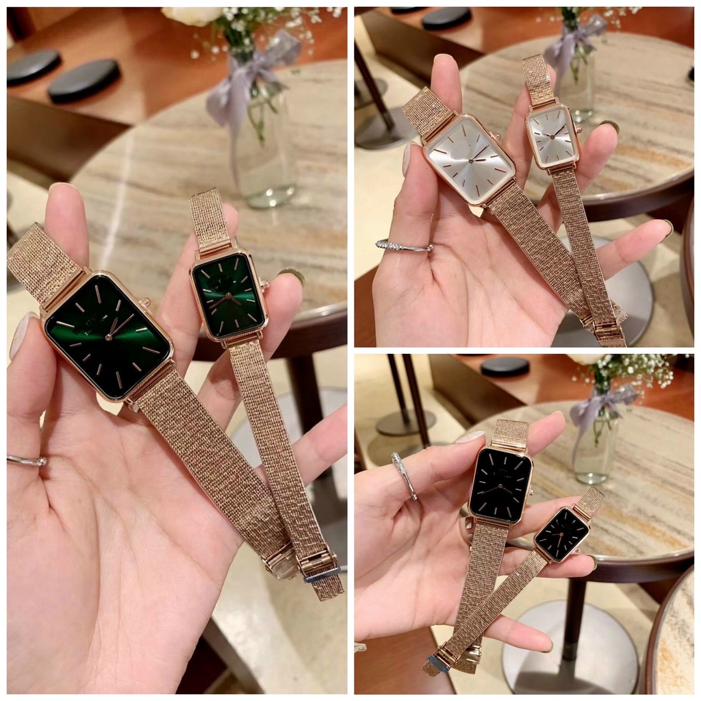 Đồng Hồ Nữ Mặt Vuông JIS màu trắng tôn da sáng tay phong cách Hàn Quốc Đồng Hồ Dây Kim Loại Mặt Nhỏ