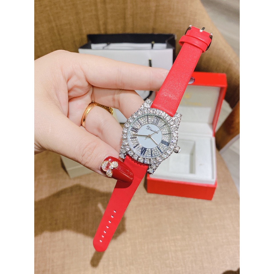 Đồng hồ DIMINI dây da mềm thiết kế đính đá kim cương nhân tạo sang trọng đeo cực sáng tay và nổi bật