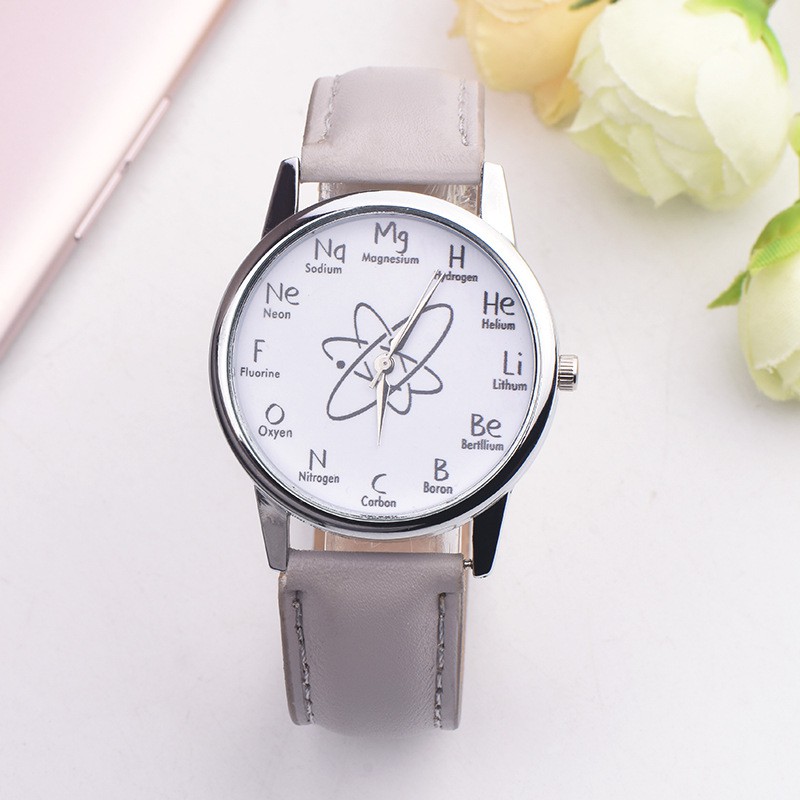 Đồng Hồ Đeo Tay Thạch Anh Tròn Giả Da Biểu Tượng Hóa Học Giản Dị Thích Hợp Làm Quà