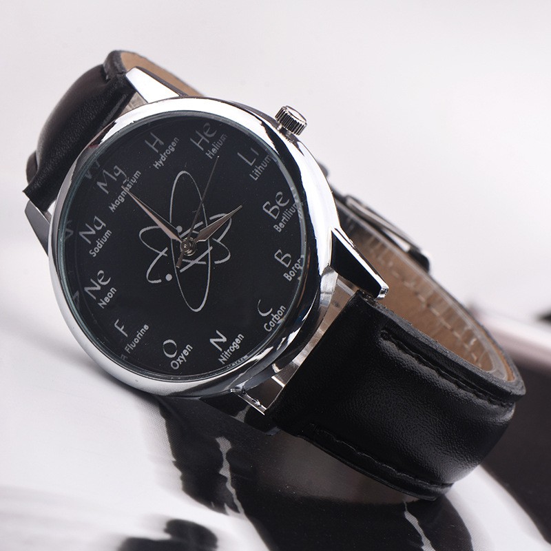 Đồng Hồ Đeo Tay Mặt Tròn Dây Giả Da In Biểu Tượng Hóa Học Dành Cho Nam Nữ