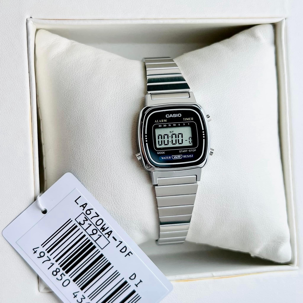 Đồng hồ Nữ Casio LA670WA-1D, đồng hồ chính hãng, bạc mặt đen