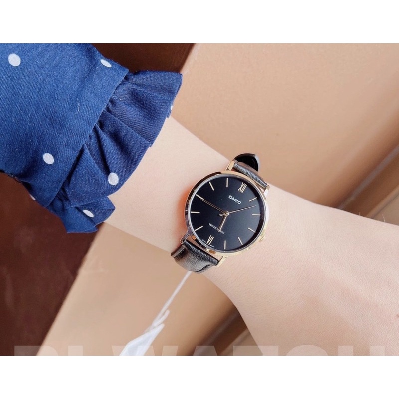 Đồng hồ Nữ Casio LTP-VT01L-1B, đồng hồ chính hãng, dây da đen mặt đen