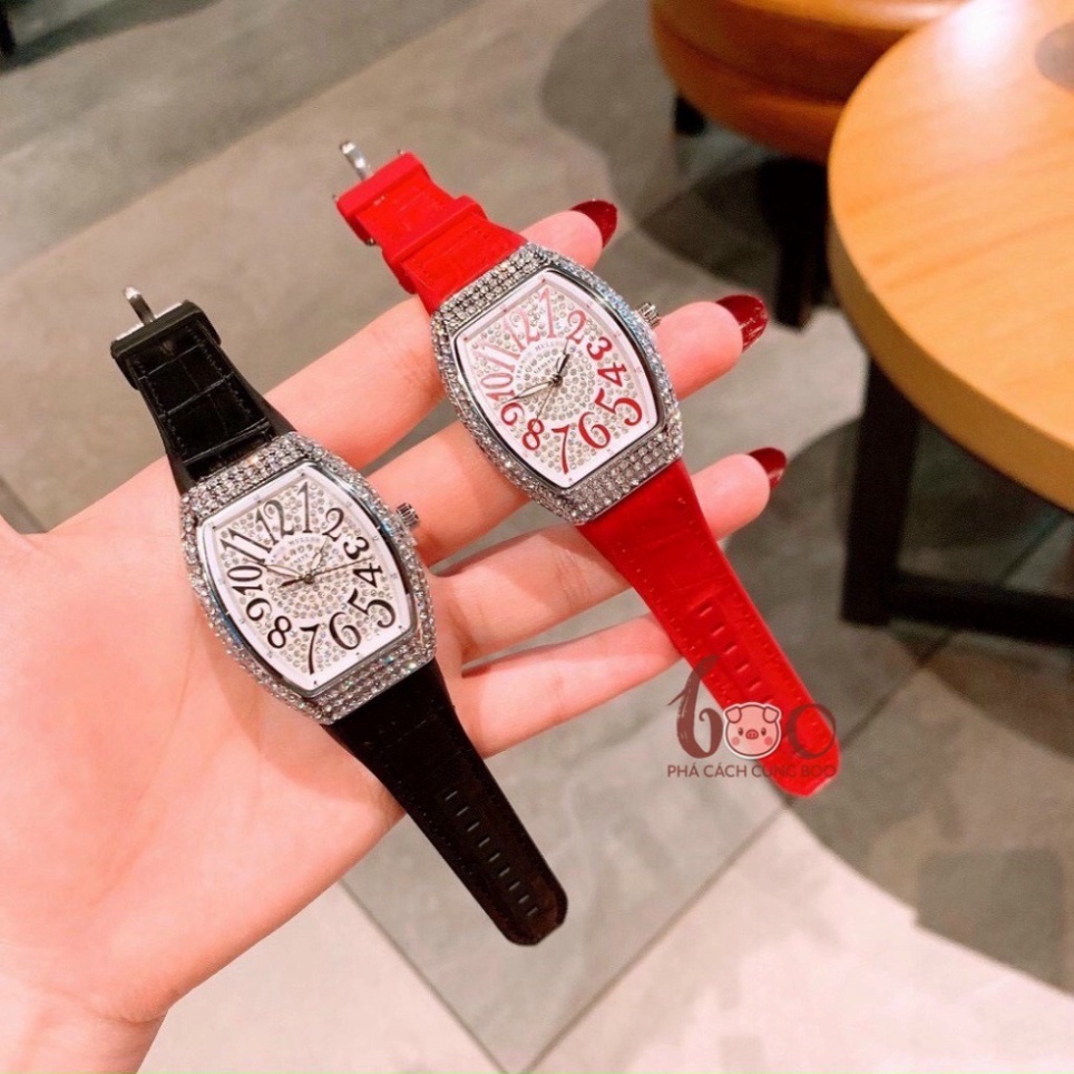 Đồng Hồ Nữ Frank Muler Mặt Đính Hột Dây Cao Su Non Cực Xinh, Bảo hành 12 tháng