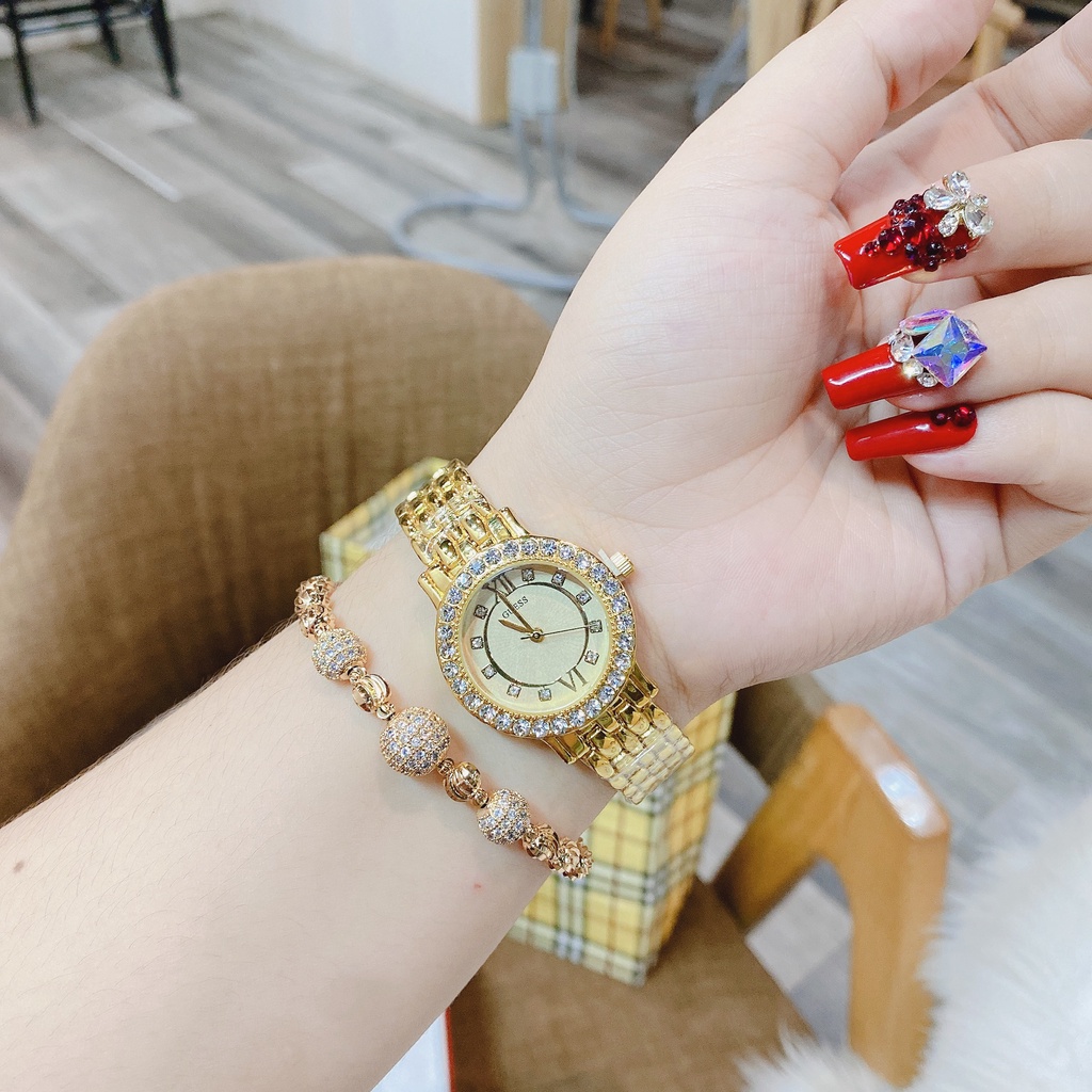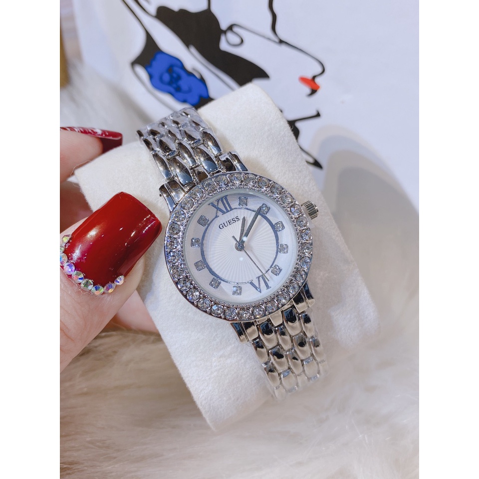 Đồng hồ nữ guess viền đá dây thép, sang trọng, thanh lịch, chống nước, bảo hành 12 tháng