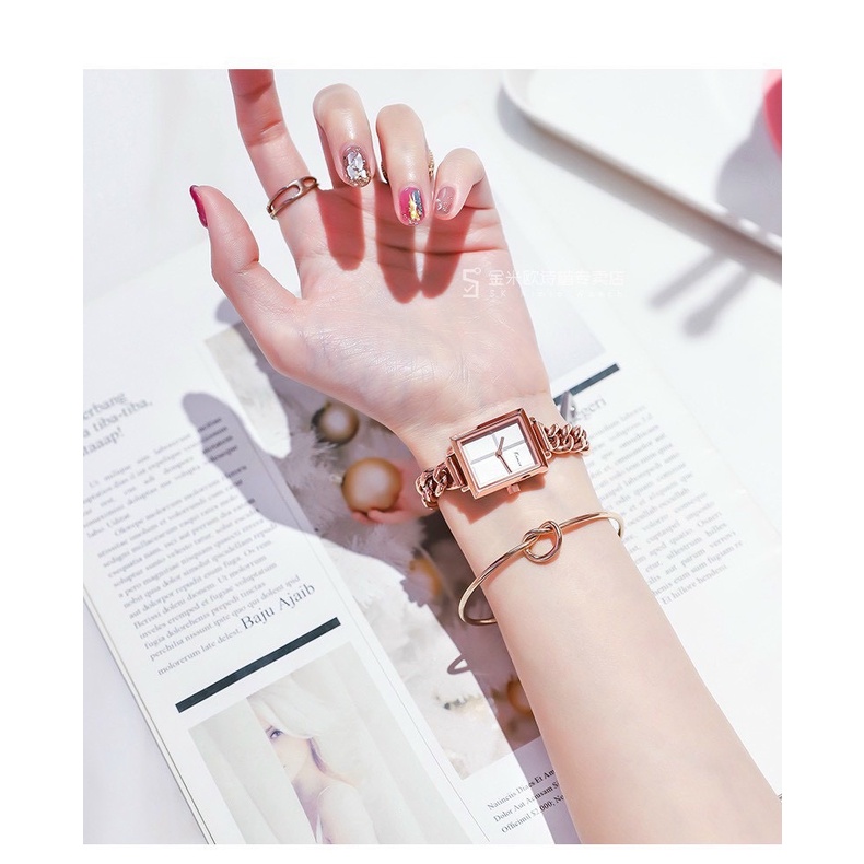 Đồng hồ nữ Kimio 6412 dây lắc xích mặt vuông nhỏ 24mm chống xước, chống nước tuyệt đối mạ chống gỉ không phai màu