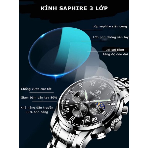 Đồng hồ nam Binkada 6 kim full kim loại đẳng cấp lịch lãm sang trọng
