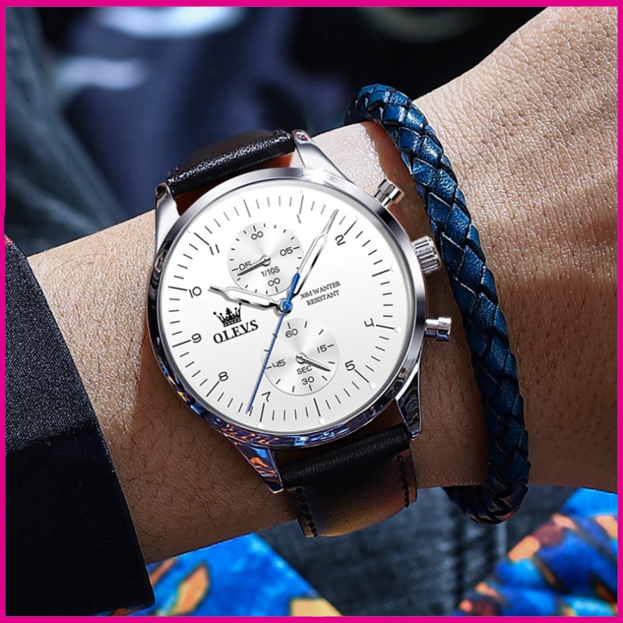 OLEVS Đồng hồ nam chính hãng Dây da có chức năng Lịch chống nước phát sáng Mặt số 2880