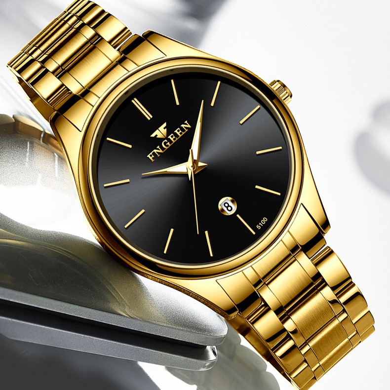 Đồng hồ nam FNGEEN G5100 lịch ngày sang trọng, đồng hồ thạch anh siêu mỏng chống thấm nước dây thép không gỉ cao cấp