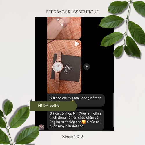 🐣 HÀNG CÓ SẴN, HÌNH CHỤP THẬT 100%🐣 ◈ THÔNG SỐ KỸ THUẬT * Thương hiệu: PW * Kiểu máy: Quartz Nhật *Dành cho: Nữ * Kích thước bề mặt: Đường kính 32mm cho nữ * Độ dày mặt: 10mm * Xuất xứ: China * Độ dày dây đeo: 2mm * Độ rộng dây đeo: 20mm * Chất liệu dây: Dây nhựa dễ lau chùi * Chất liệu mặt: Kính đính đá * Độ chống nước: 3ATM * Năng lượng sử dụng: pin * Phong cách : Thời trang, sang trọng ----------------------------------------------------------------------------------- ✨Ưu đãi đi kèm • Tặng hộp • Tặng kèm pin dự trữ • Thêm kính chống trầy +30.000vnd • Thời gian bảo hành: 6 tháng cho máy • Đổi trả trong 7 ngày nếu hàng bị lỗi do nhà sản xuất như là rớt kim, hư khóa, đồng hồ không chạy. TRƯỜNG HỢP KHÔNG BẢO HÀNH: • Vỡ do sử dụng không đúng, tai nạn trong quá trình sử dụng. • Trầy xước về dây hoặc mặt kiếng bị trầy xước, vỡ do va chạm mạnh trong quá trình sử dụng. • Tự ý thay đổi máy móc bên trong, mở ra can thiệp sửa chữa trong thời gian còn bảo hành ➖➖➖➖➖➖➖➖➖➖➖ 📲Contact : 079 699 212 🤍 Instagram : russboutique