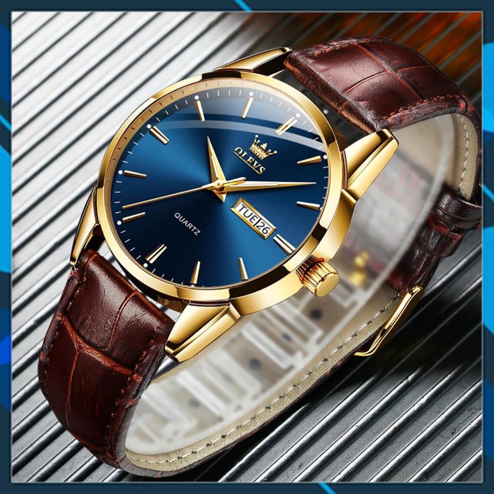 Đồng hồ nam OLEVS Nhật Bản,chống vô nước,Chống Xước,Đồng hồ chạy pin,dạ quang,Dây da cao cấp,BH 12th