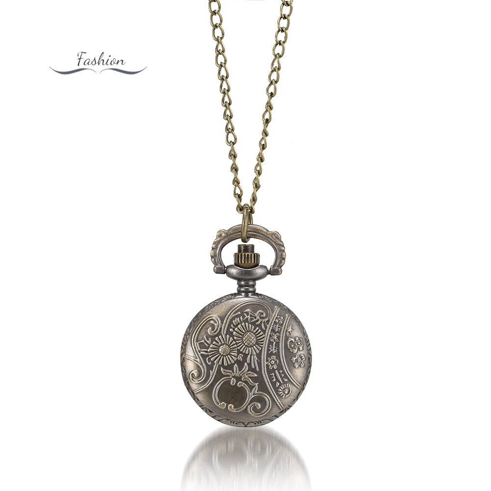 Đồng Hồ Quả Quýt Màu Đồng Thiết Kế Chạm Khắc Rỗng Tinh Xảo Đẹp Mắt Có Dây Đeo Mắt Xích Cho Nam Nữ