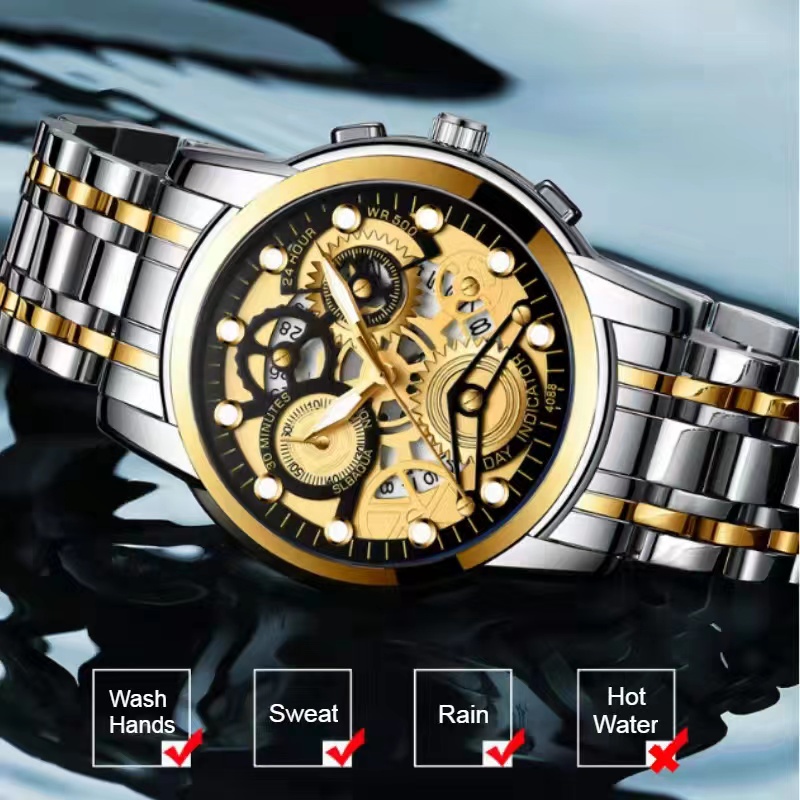 Đồng Hồ Quartz Phát Quang Chống Thấm Nước Bằng Thép Không Gỉ Sang Trọng Cho Nam