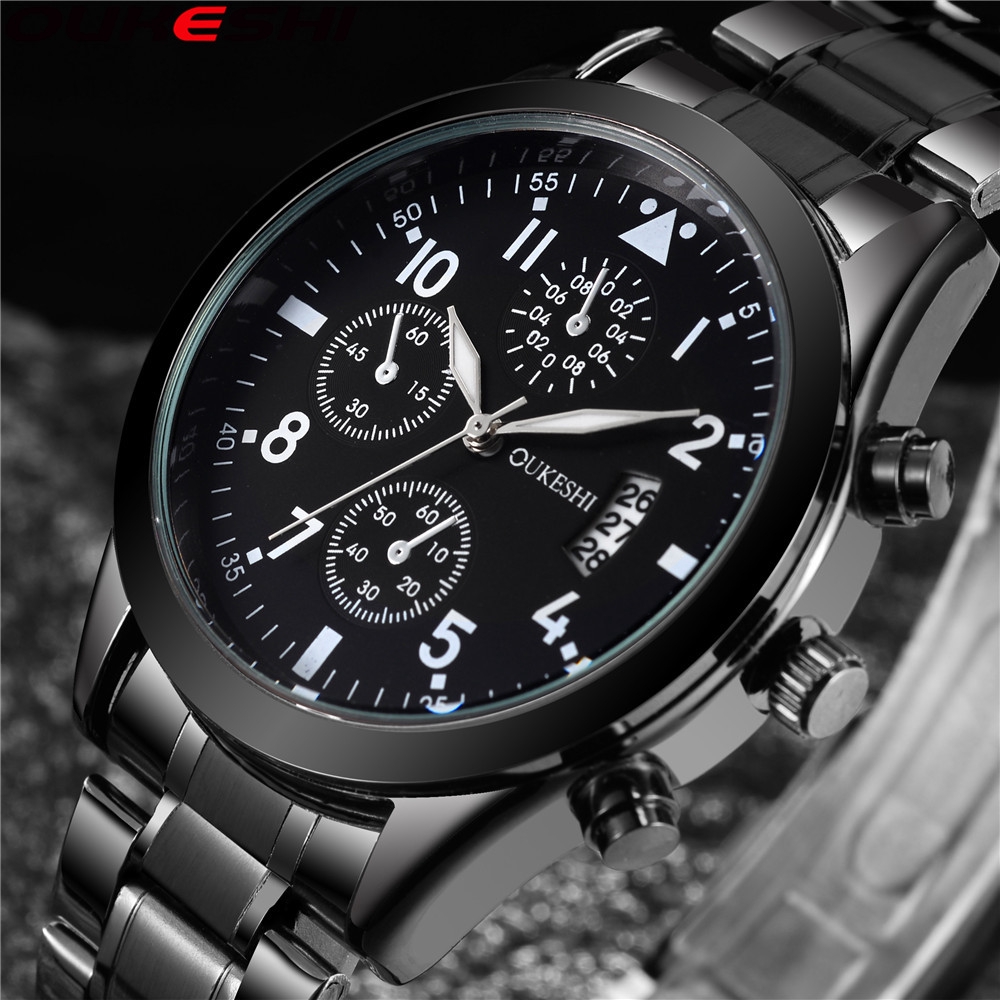 Thời gian giao hàng dự kiến cho sản phẩm này là từ 7-9 ngày Dành cho: Nam Đồng hồ đeo tay loại thạch anh Vỏ đồng hồ hình tròn Bao bì bằng giấy Đường kính mặt số: 40mm Phong cách: Thời trang, đơn giản Loại khoá: Bấm Thương hiệu: OUKESHI Chất liệu: Thép không