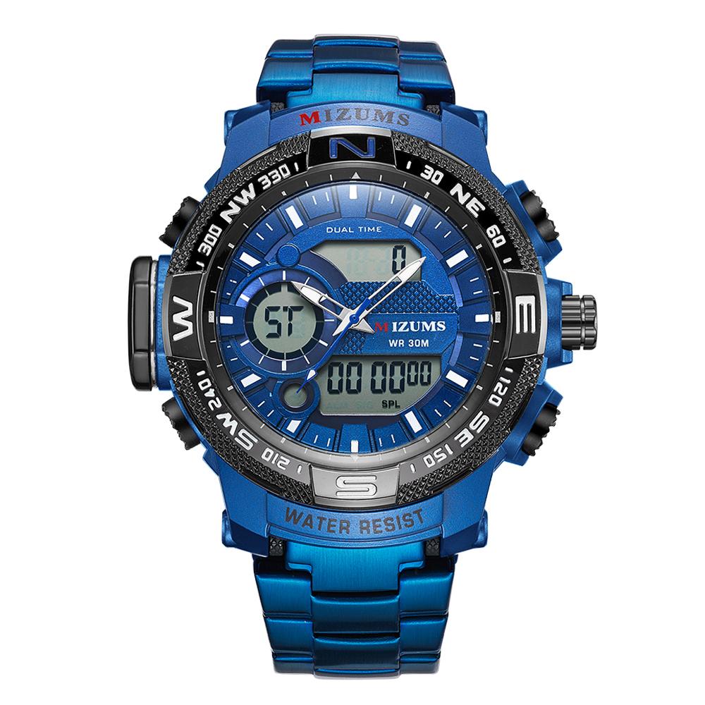 Đồng hồ thời trang MIZUMS Nam,Vỏ hợp kim thép không gỉ Dây đeo kỹ thuật số Analog Dual Movement