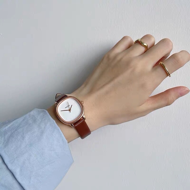 Đồng hồ nữ thời trang mặt vuông nhỏ cá tính dể thương dây da mềm êm tay, phong cách Hàn Quốc DH08