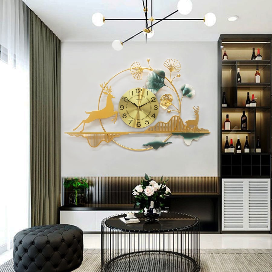 Đồng Hồ Treo Tường Trang Trí Decor DH11 quartz kim trôi hoa mai vàng nội thất cỡ lớn nghệ thuật phòng khách sang trọng