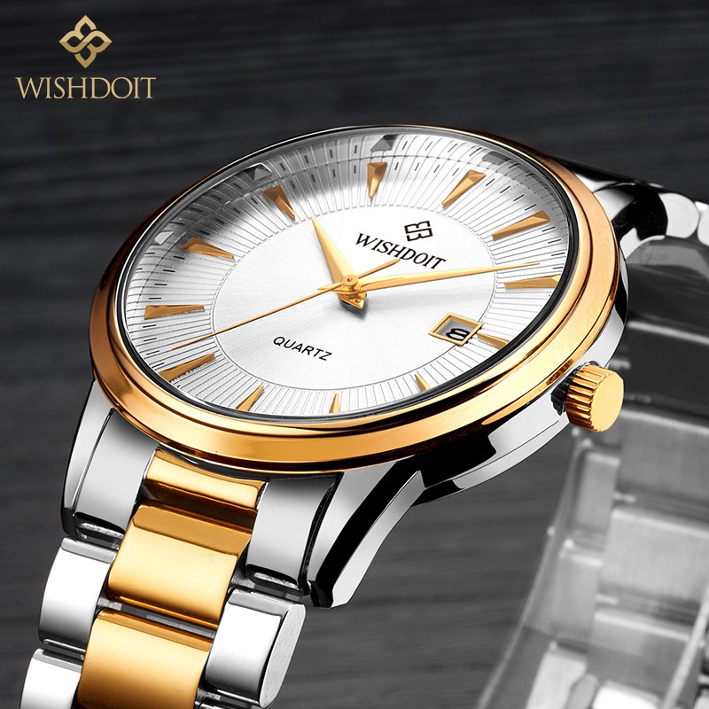 Đồng hồ WISHDOIT đơn giản máy thạch anh bằng thép không gỉ thanh lịch thời trang chống nước có lịch cho nam