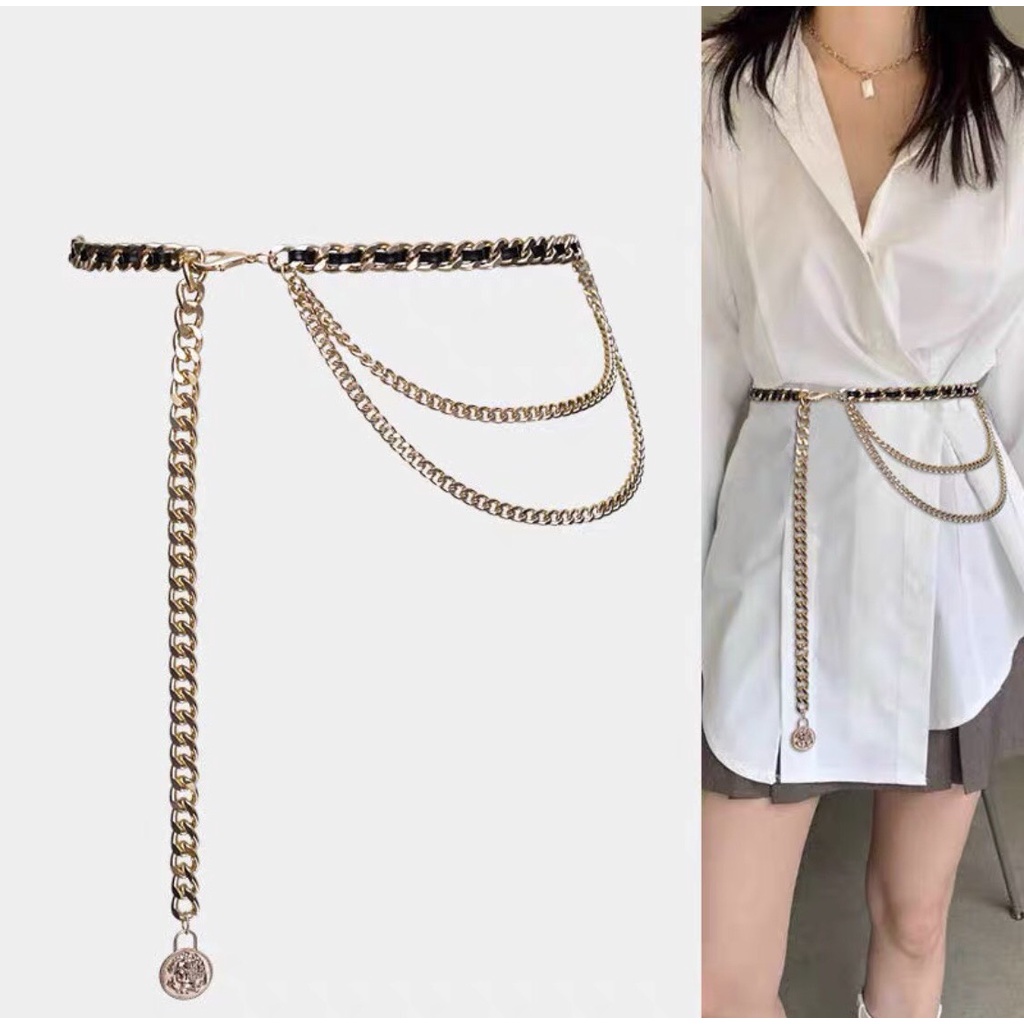 Đai váy áo xích phối da CN sang chảnh - Dây xích eo thắt váy áo nữ kim loại hàng cao cấp loại 1