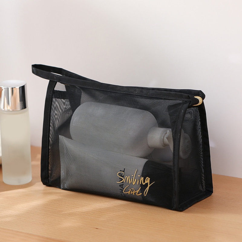Túi đựng mỹ phẩm/ đồ dùng vệ sinh cá nhân vải lưới màu đen sức chứa lớn nhỏ gọn thời trang du lịch