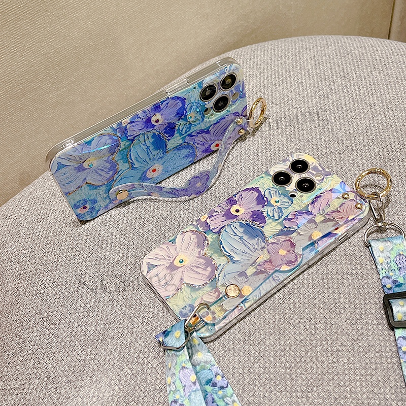 Điện Thoại Ốp Điện Thoại Silicon Mềm Họa Tiết Hoa Có Dây Đeo Cho iphone 14 plus pro max