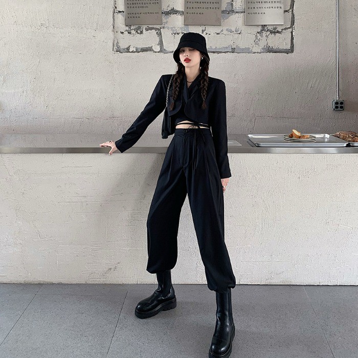 Ảnh thật 4 hình cuối-HC443.Set áo croptop + quần ống rộng thời trang cá tính