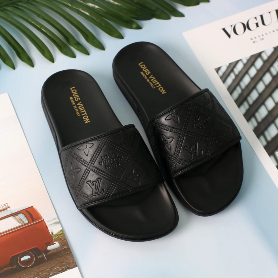 |Ảnh Thật - VIDEO| Dép LV In Vân Họa Tiết Quai Da Chống Nước - Dép Quai Ngang Thời Trang Cao Cấp Hottrend 2022