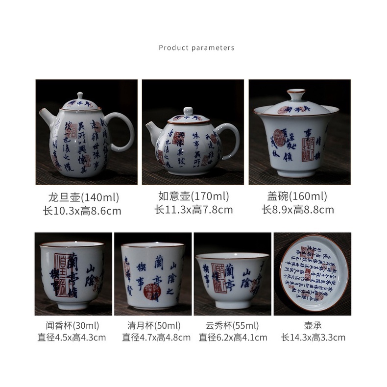 Ấm, Chén Sứ Cảnh Đức Men Tro Họa Tiết Vẽ Tay Thủ Công Toàn Chế Lan Đình Tự Mô tả sản phẩm: + Chất liệu: sứ Cảnh Đức + Xuất xứ: Cảnh Đức Trấn, Trung Quốc + Họa tiết: Trơn bóng vẽ tay họa tiết Lan Đình Tự + Sản phẩm có kích thước và dung tích như ghi chú trên hình ảnh