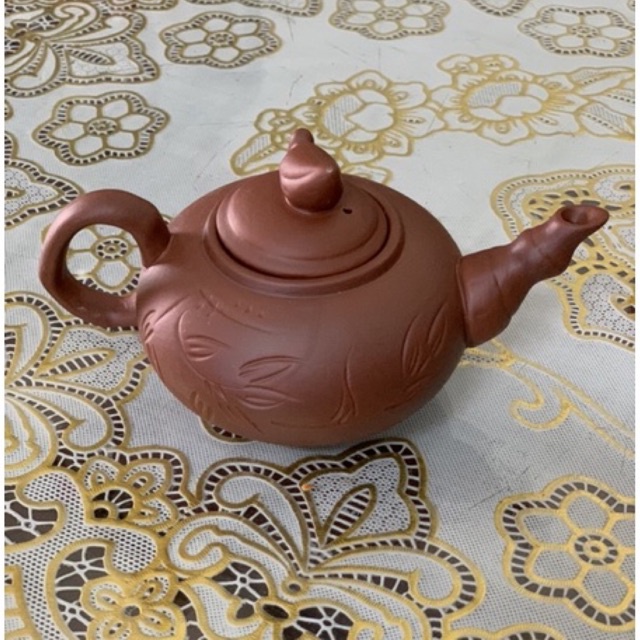 Ấm rời gốm sứ Bát Tràng gốm đất nung có vòi cần trúc độc đáo, họa tiết khắc chìm vẽ tay thủ công