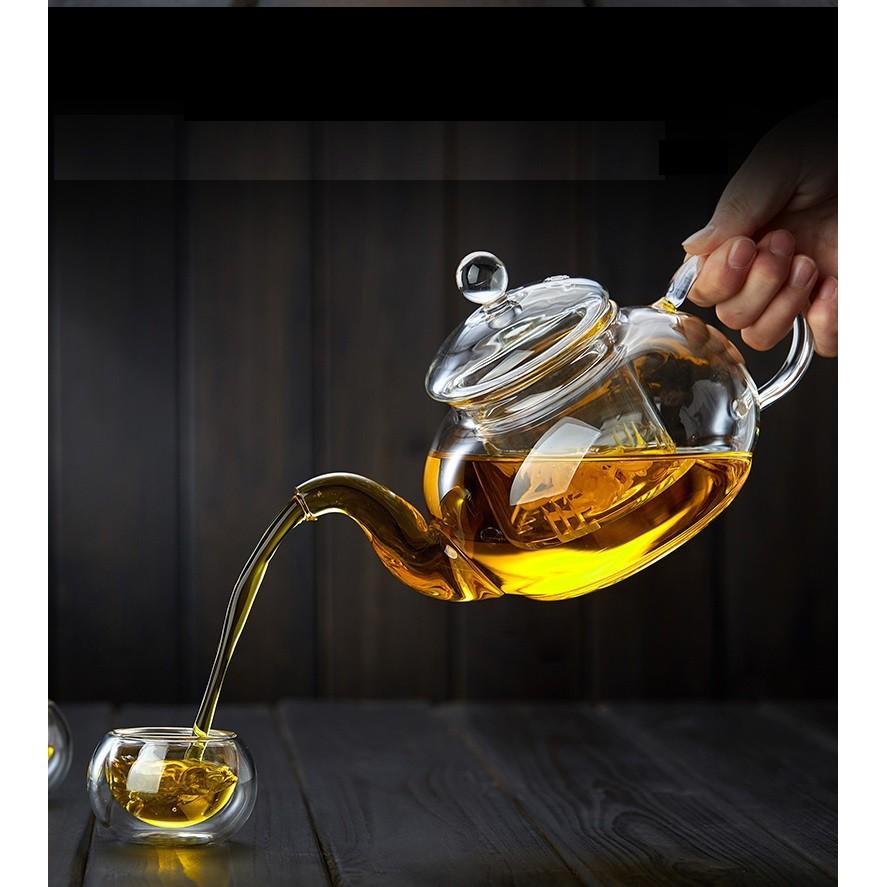 Ấm trà thủy tinh chịu nhiệt cao cấp Chất liệu: thủy tinh cao cấp nhập khẩu Borosilicate. Size: 600ml Quy cách: 1 ấm, 1 lọc trà, 1 nắp * Thủy tinh cao cấp chịu nhiệt từ -20 đến 1...