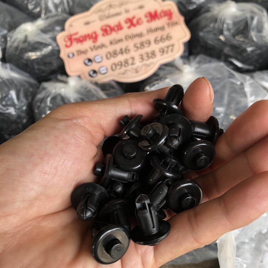 ỐC BẤM DÀN NHỰA Các loại xe máy Chốt nhựa dàn áo xe Honda Ya đều sử dụng được. - Chốt nhựa dàn áo xe làm từ chất liệu nhựa đen ABS cao cấp , chốt dẻo dai, không nứt bể. - Sản xuất bằng máy ép khuôn nóng chính xác, chốt nhựa dàn áo xe luôn sắc nét không bị dính ba dớ,
