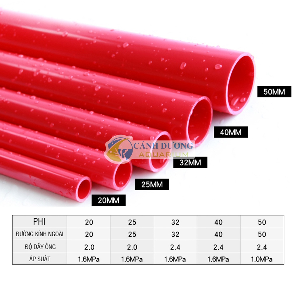 Ống đỏ U-PVC Phi 32-25-20 chuyên dùng cho hồ cá