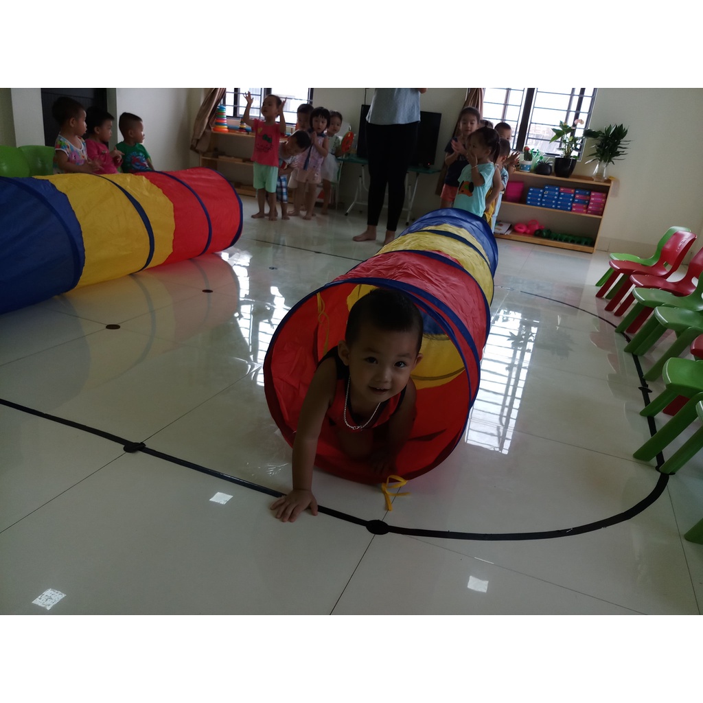 Ống chui đơn cho bé tập bò - đường hầm 3 Màu Vải Dù gấp gọn Cho Bé vận động - dài 1,8m