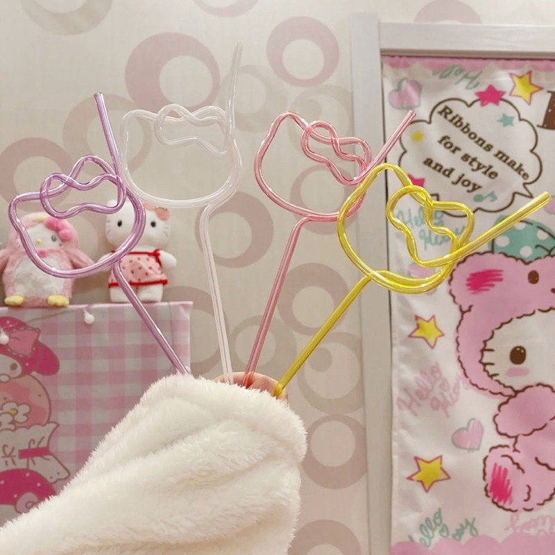 Hoạt Hình Ống Hút Mềm Hình Hello Kitty Nhiều Màu Dễ Thương Có Thể Tái Sử Dụng Kèm Phụ Kiện